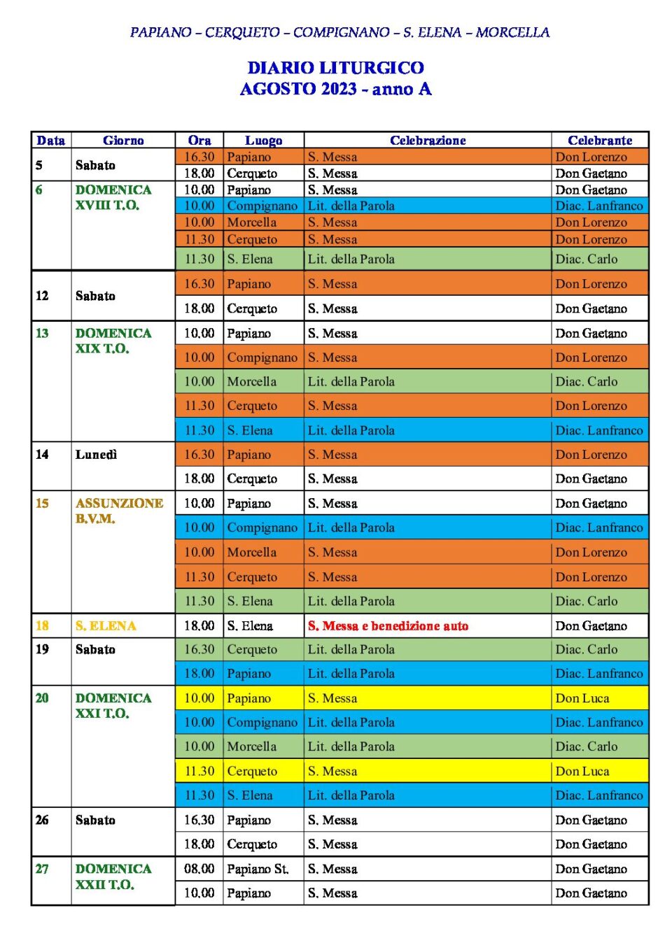 mese di Agosto 2023